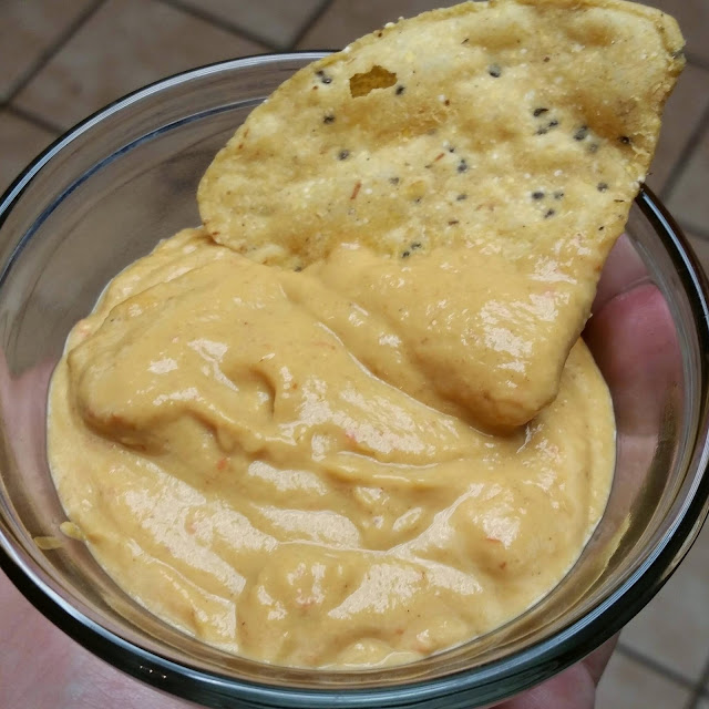 I'm a big fan of nachos and found this recipe from Post Punk Kitchen - Cashew Queso which got a ton of great reviews and comments. We took out the jalapeno that she recommended and changed a couple ingredients to suit our taste, so check out the original recipe if you want some variation.